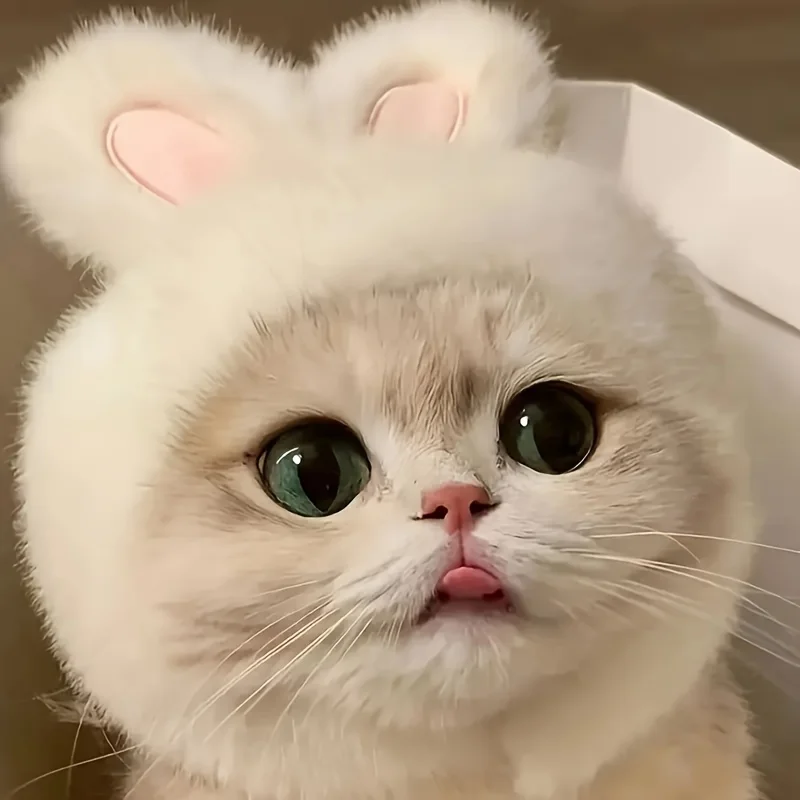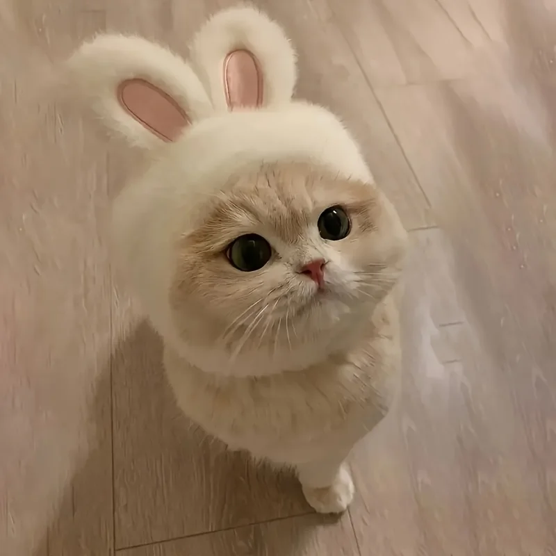 1pc Bunny Ears Cat Hat Themed Pet Costume Knit Fabric Set Comfortable Polyester Pullover Headwear for Cats & Small Dogs