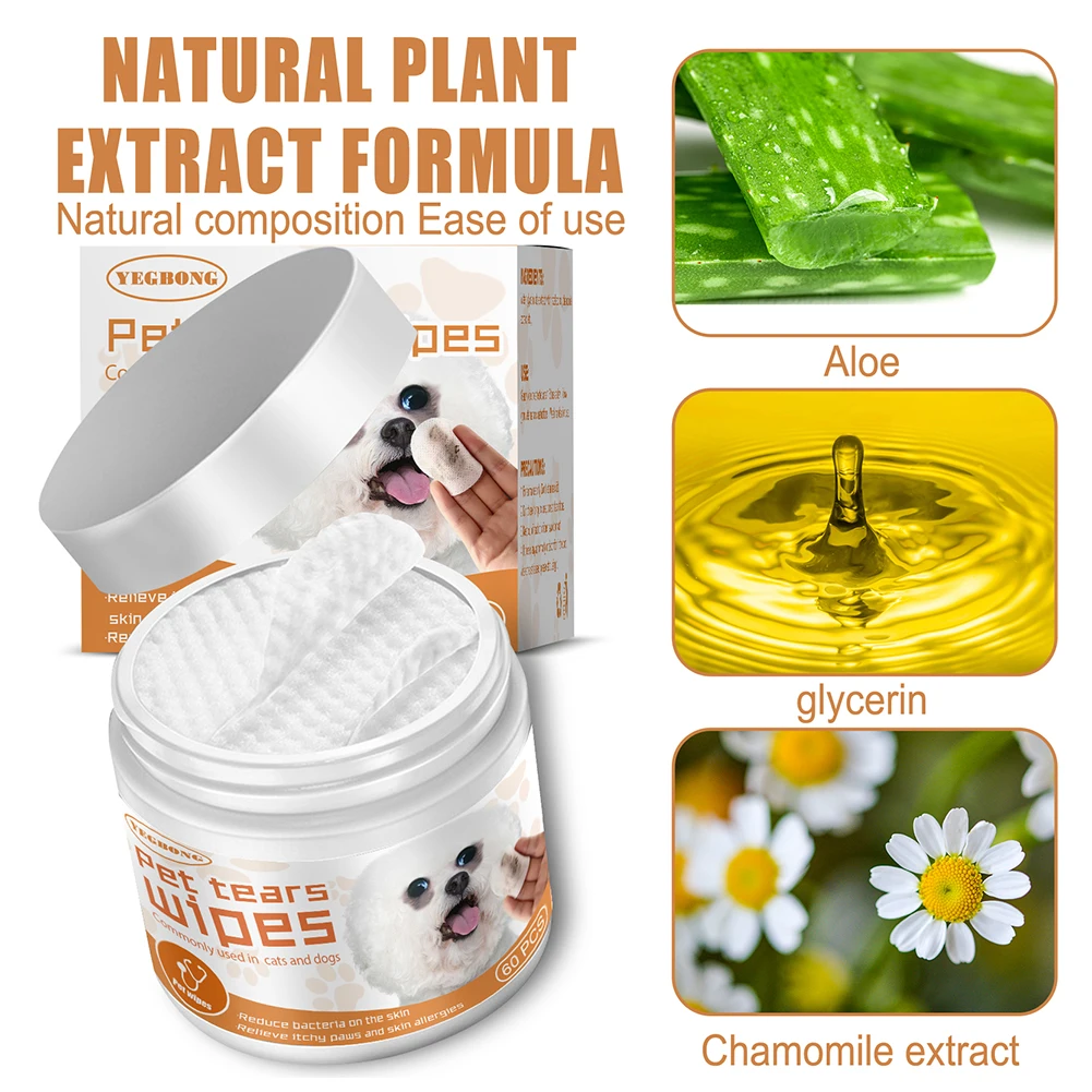 60pcs/set Wet Wipes Universal Disposable Non-woven Cleaning Wipes Ear Stain Remover Dog Cat Wipes Grooming Tools Pet Accessories