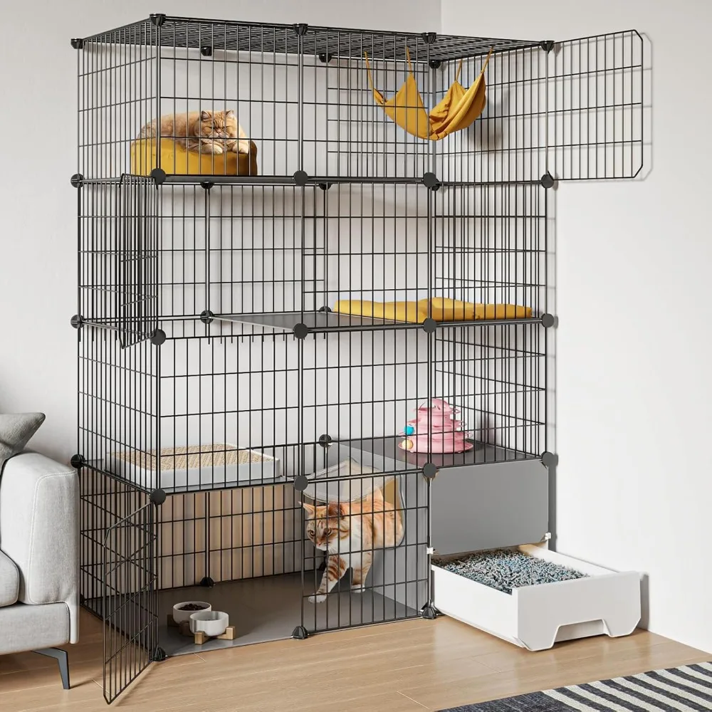 Oneluck Large Cat Cage with Litter Box, 4-Tier DIY Enclosures Detachable Metal Wire Kennel Indoor Crate Large Exercise Place Ide