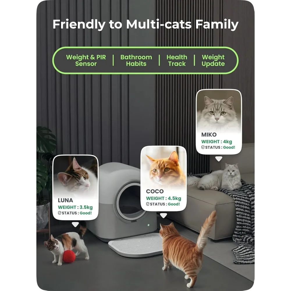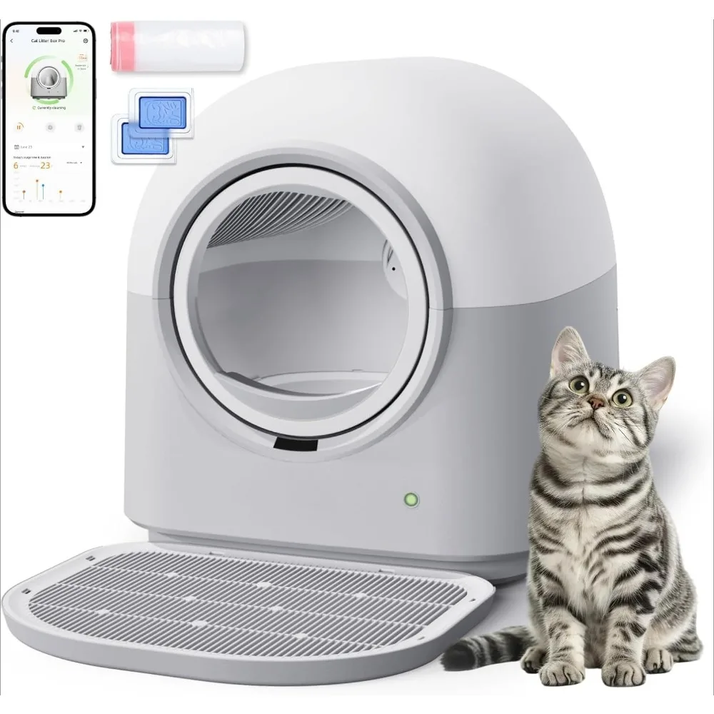 Self Cleaning Cat Litter Box Safe Anti-Pinch,with Deodorizer and Liner,Automatic Hands-Free Smart Robot Self Cleaning Litter,Cus