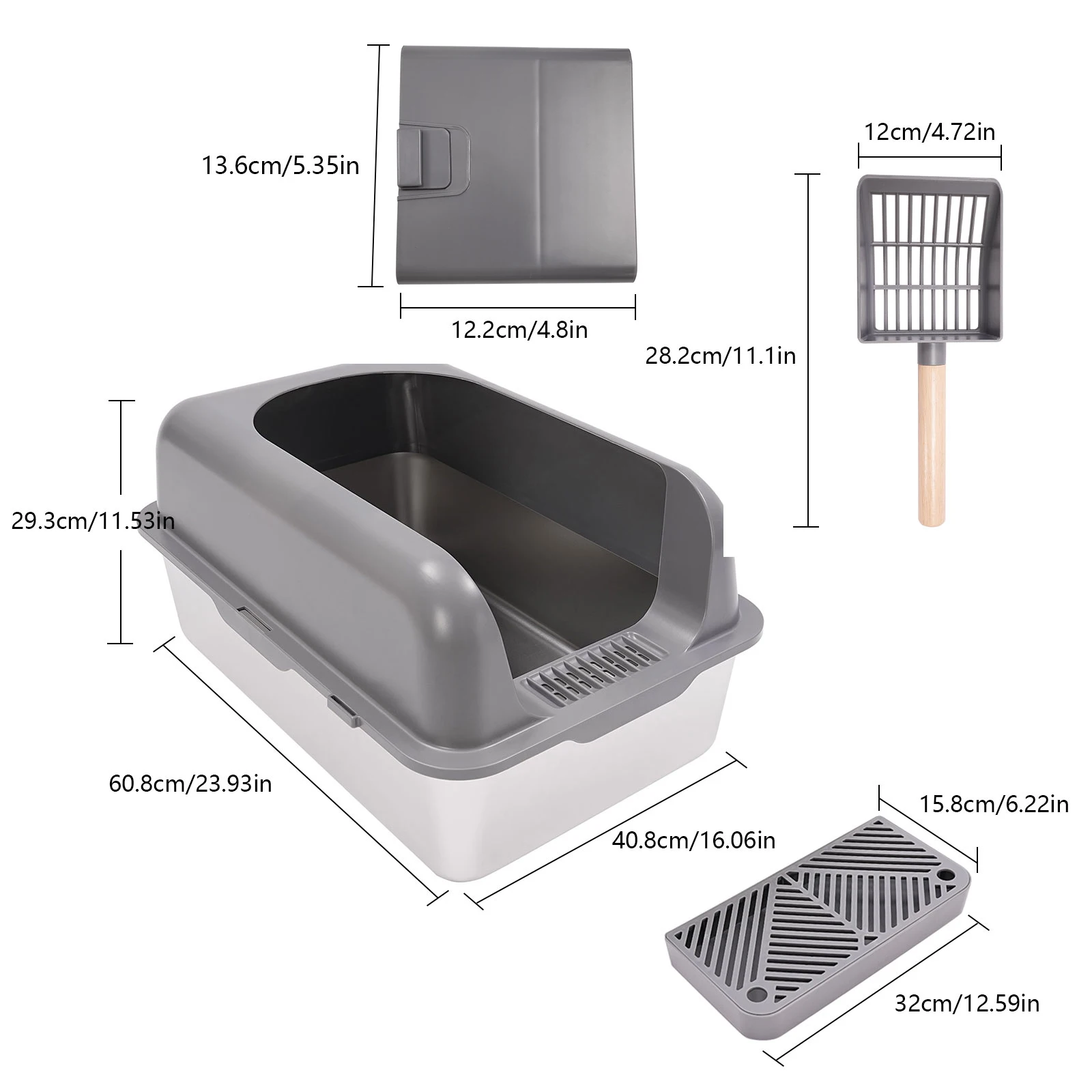 SPECIFICATIONSBrand Name: NONEHigh-concerned chemical: NoneIs Smart Device: NoMaterial: Stainless steelOrigin: Mainland ChinaType: catsStainless Steel Cat Litter Box with Protective Shovel Placed in Living Room, Hallway, Bedroom, Pet StoreSpecificationMaterial: Stainless Steel, ABSProcess: Electrolysis, Injection MoldingColor: Dark Gray+SilverAssembly Required: YesStyle: ModernMount Type: Floor-MountedCapacity: 20L/5.28galApplicable Cat Weight: ≤10kg/22.05lbsFence Height: 15cm/5.91inLitter Collecting Pedal Size:...