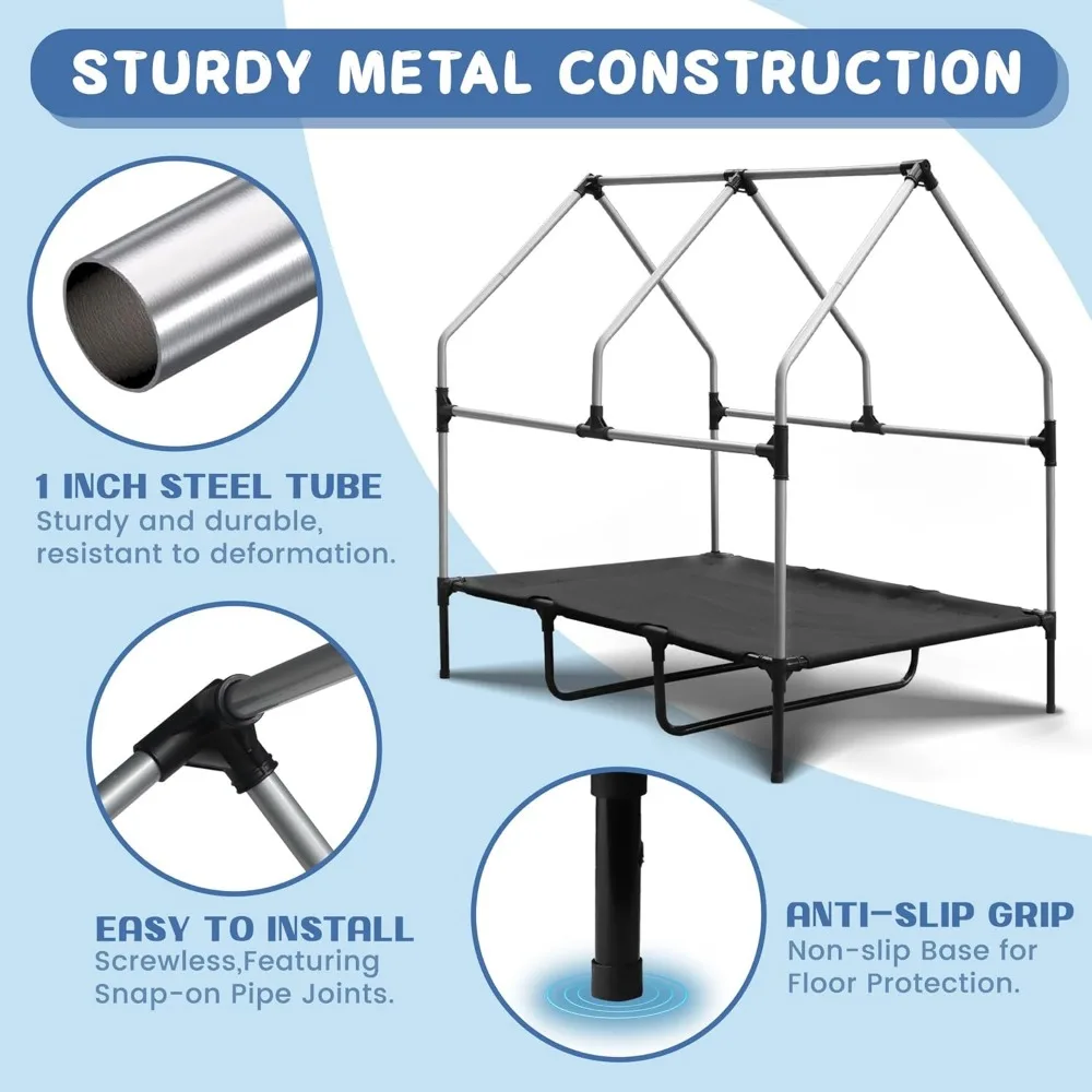 SPECIFICATIONSApplicable Dog Breed: UniversalBrand Name: NONEColor: GrayHign-concerned Chemical: NoneMaterial: Textilene Bed PVC Cloth Steel StructureOrigin: Hongkong (China)Product Dimensions: 75.98D x 35.83W x 49.21HStyle: ModernType: DogsFits Dogs up to 150lbs: Spacious enough for medium to large breeds. Great dog house for large dogs like Great Dane, German Shepherd, and Rottweiler.Shepherd, and...
