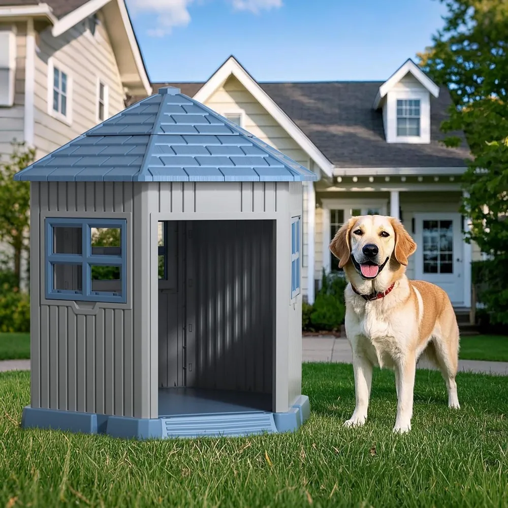 Dog House Indoor Outdoor Durable Large Dog Shelter with Outside Dog Kennel with Window and Elevated Floor for Small Medium Dogs