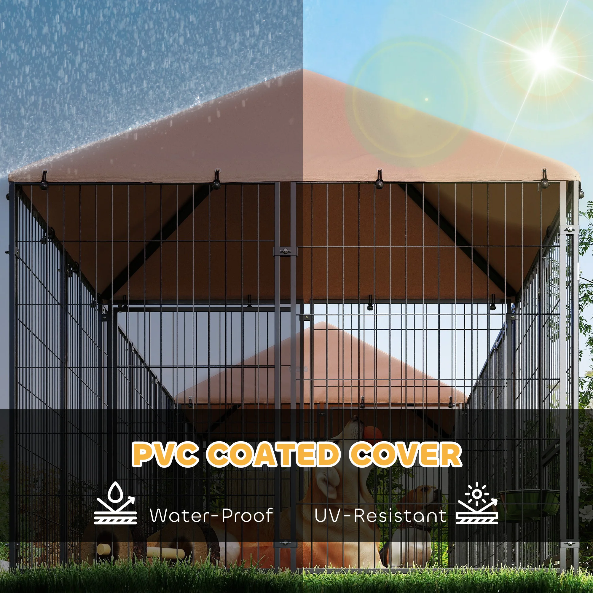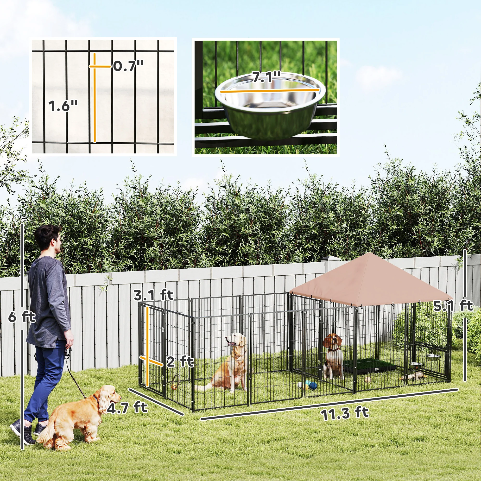 Dog Kennel Outdoor with Rotating & Adjustable Height Bowls