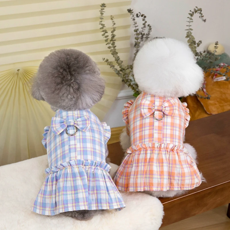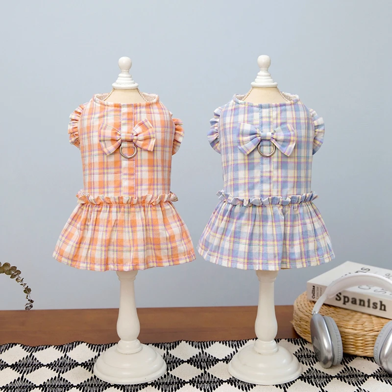 Dog Dress Summer Pet Clothes For Dogs Skirt Plaid Princess Dog Dresses Yorkie Clothes For Dogs Skirts Pet Cat Dress