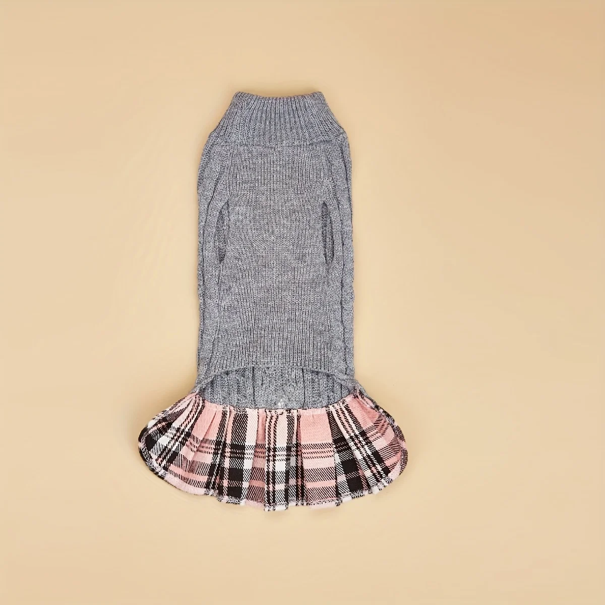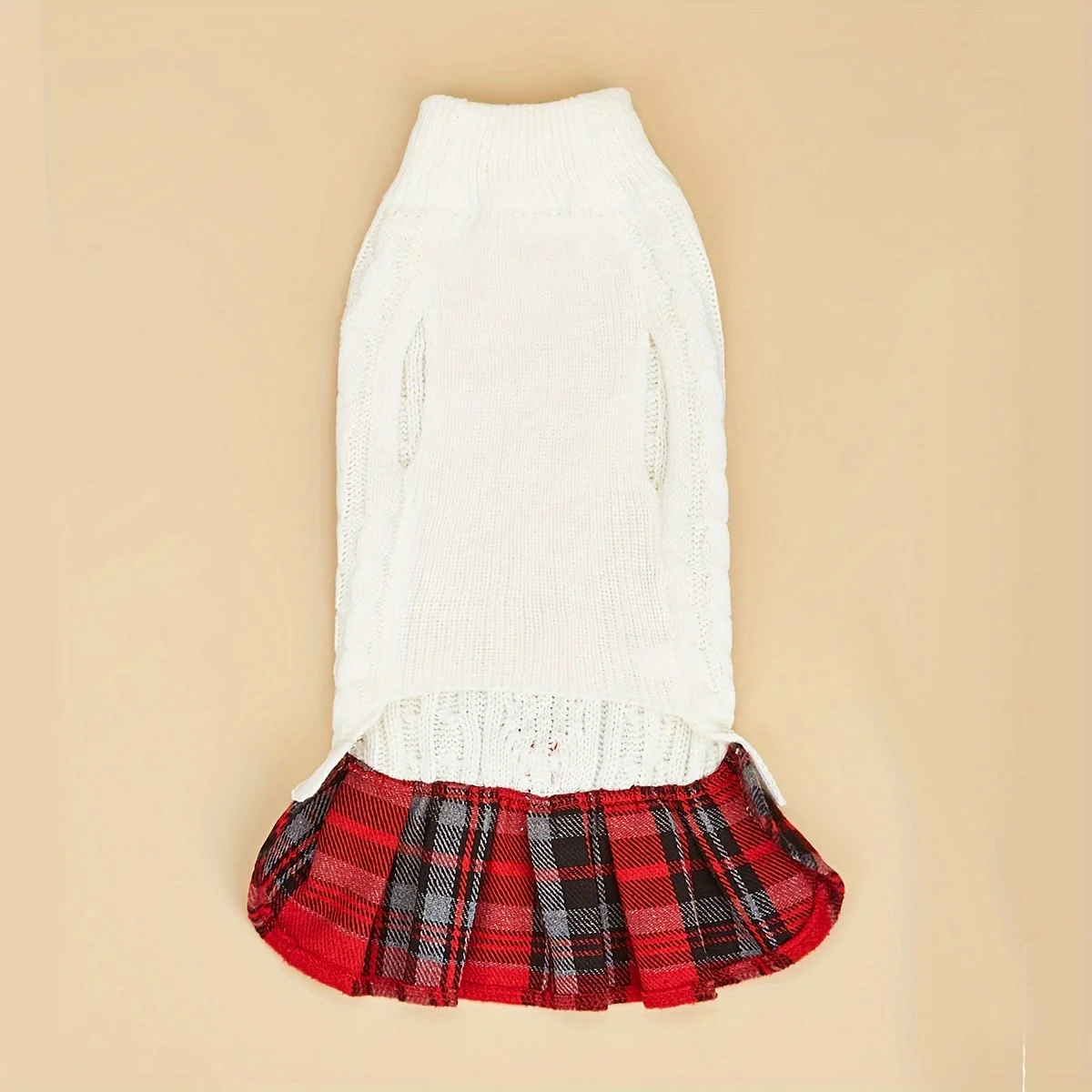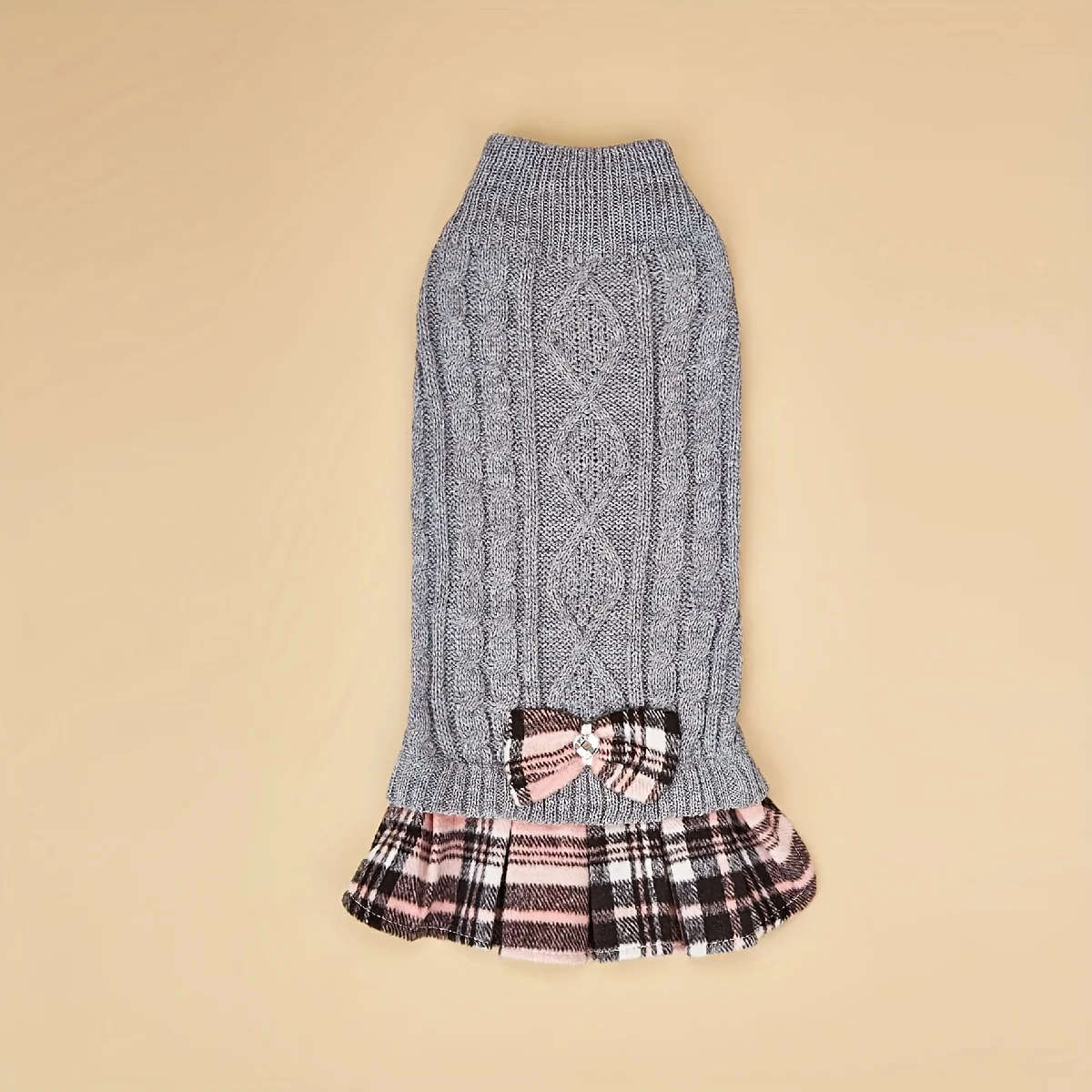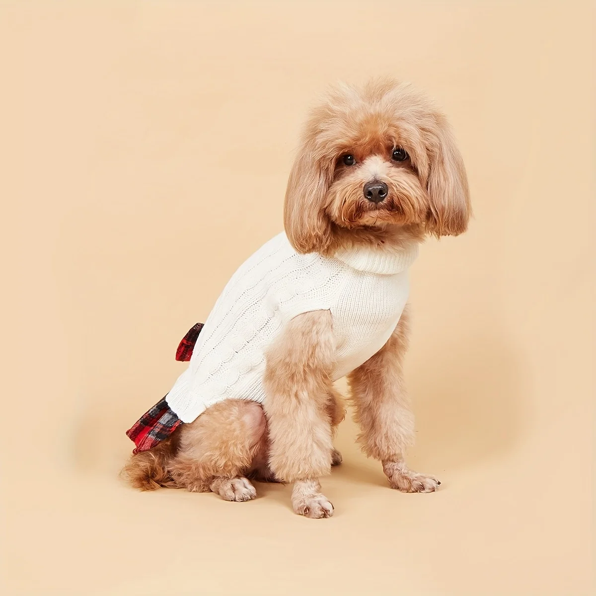 Dog Sweater Dress for Small Dogs with Bowtie Turtleneck Knitted Dog Dress Pet Dog Winter Clothes Warm Sweater for Yorkies Chihua