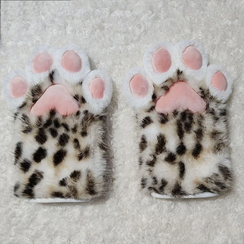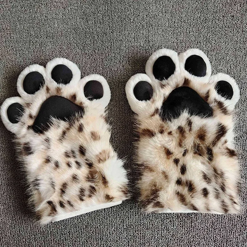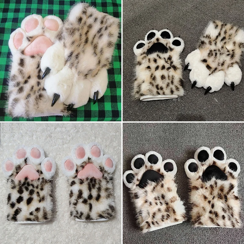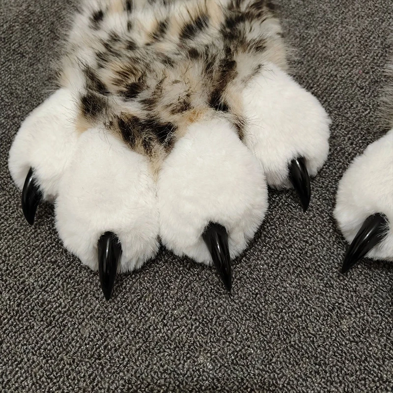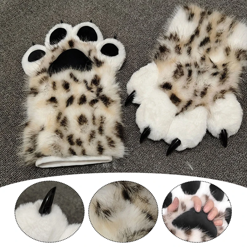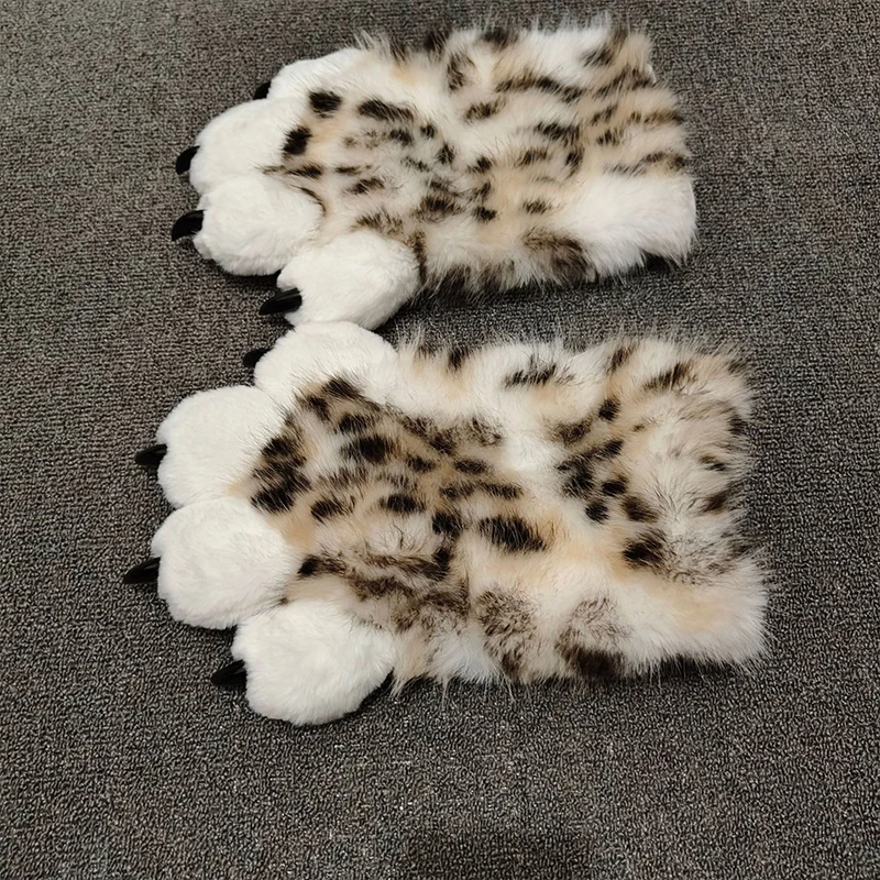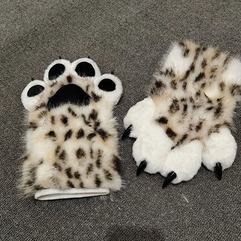 Faux Fur Snow Leopard Claws Fursuit Colorful Furry Cat Paw Halloween Dress Up Cosplay Costume Nail Tiger Claw Lolita Mittens