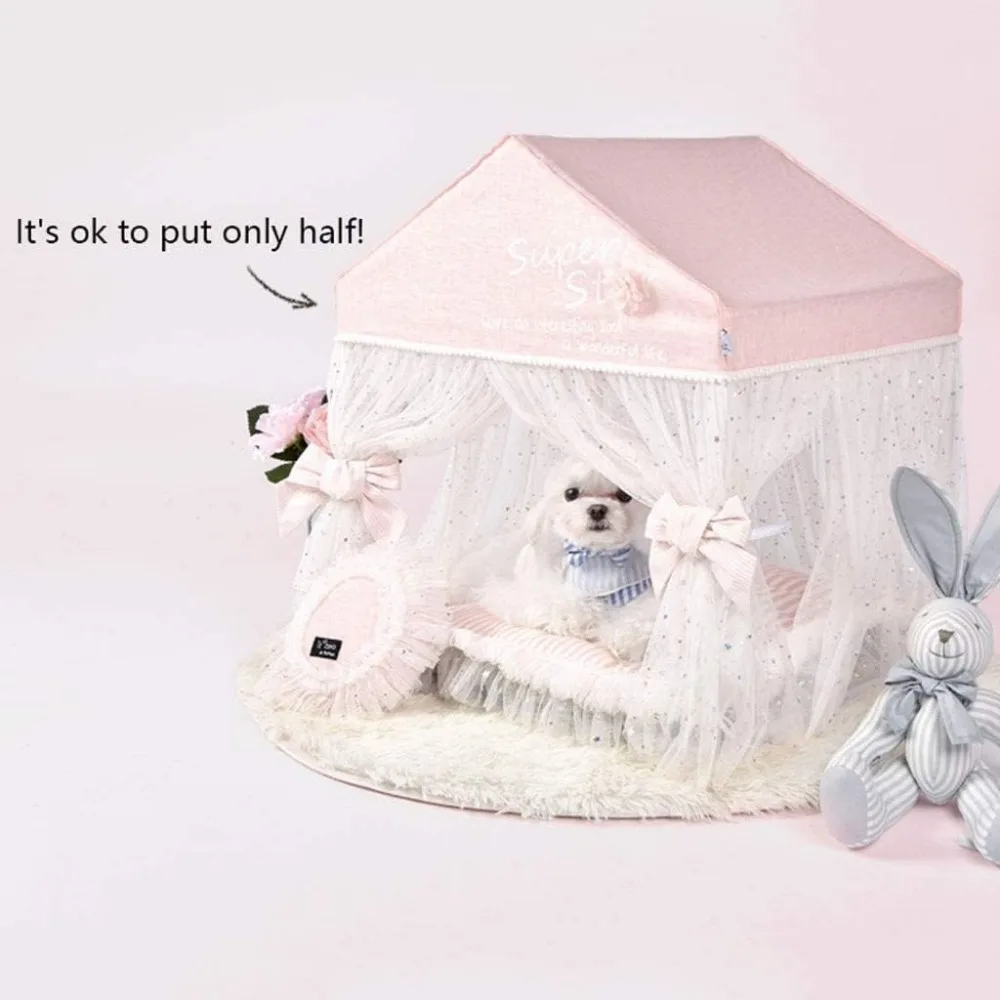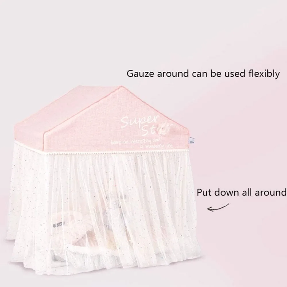 Cute Princess-Style Pet Bed with Soft Winter Warmth, Ideal for Cats and Dogs, Complete with Gauze Curtain and Comfortable Nest f