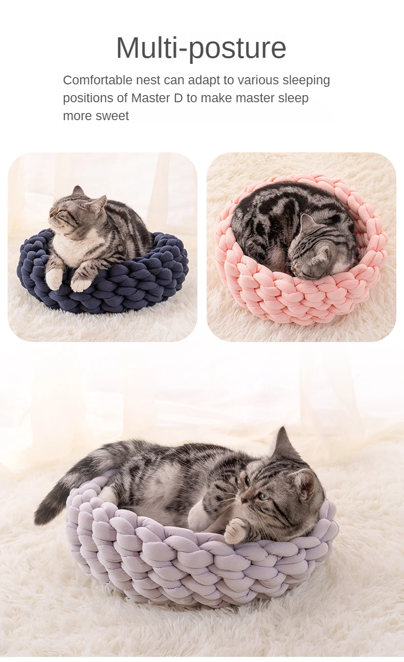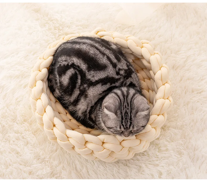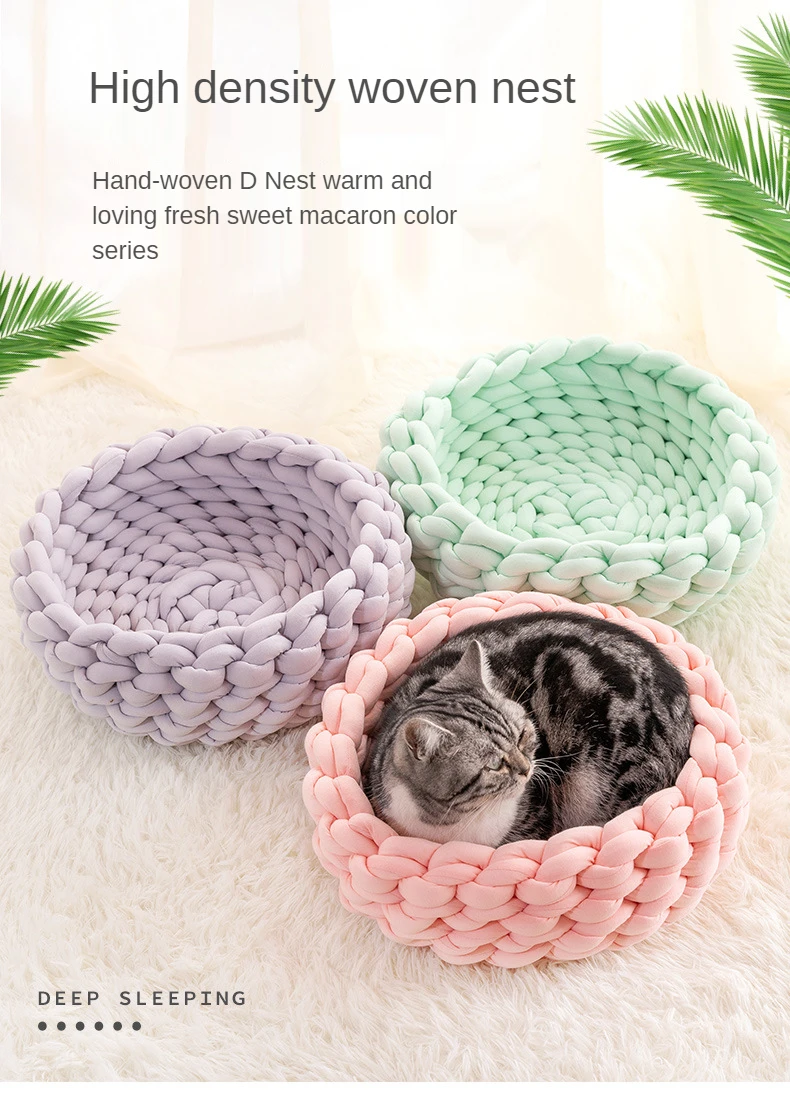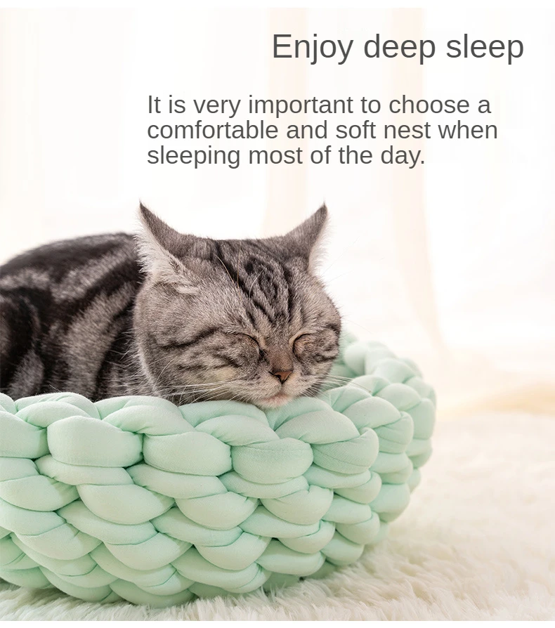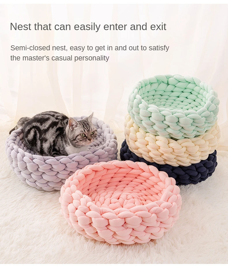 Handmade Knit Cat Beds, Mats, Warm, Soft, Small Dogs Kennel, Puppy, Kitten Cave, Sleeping Bag, Detachable, DIY Pet House