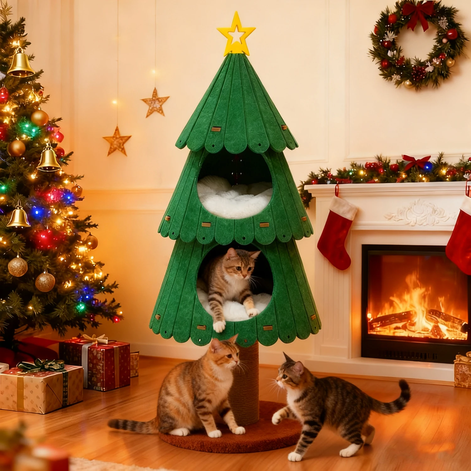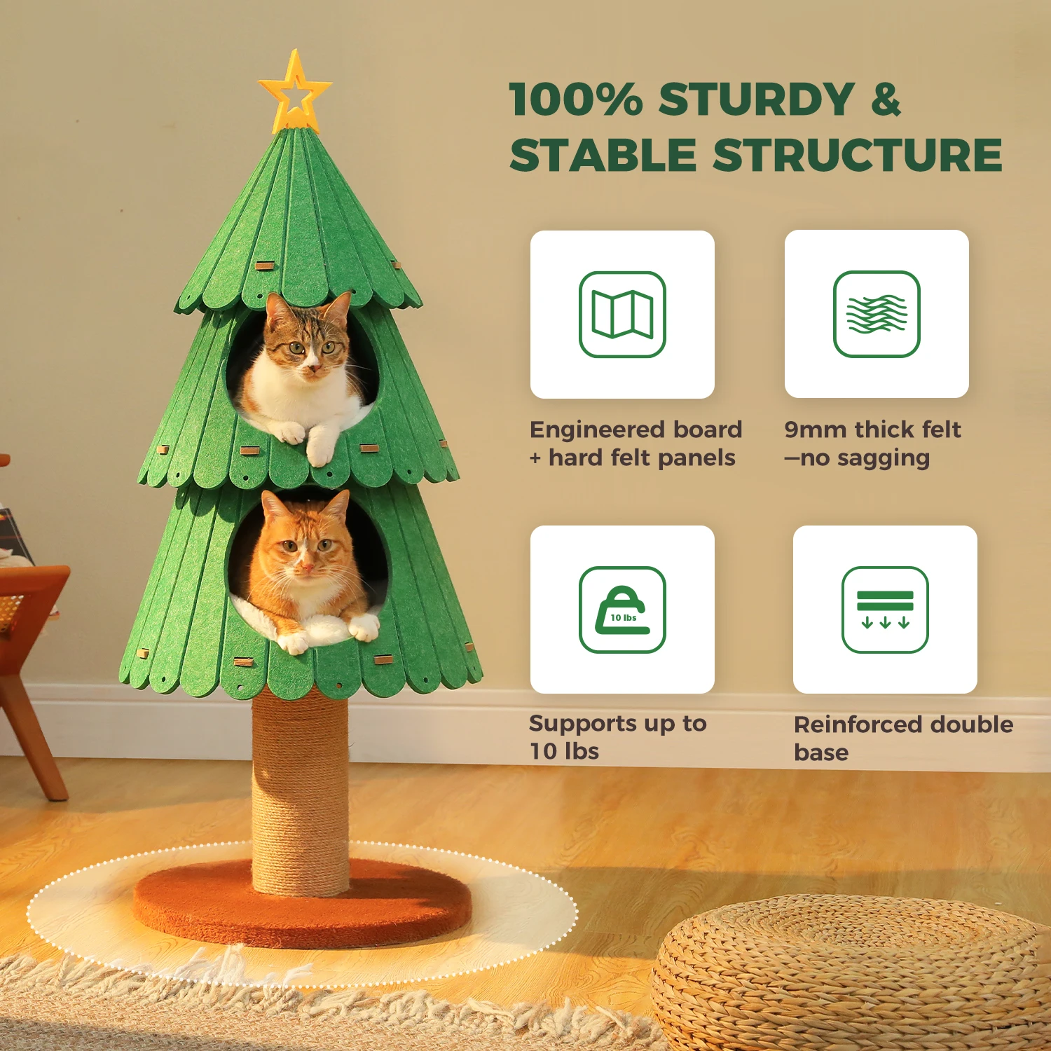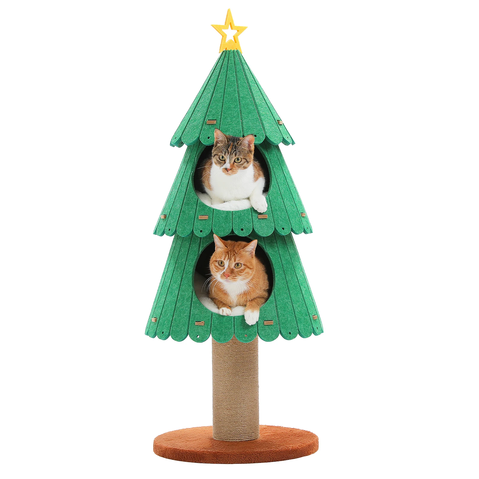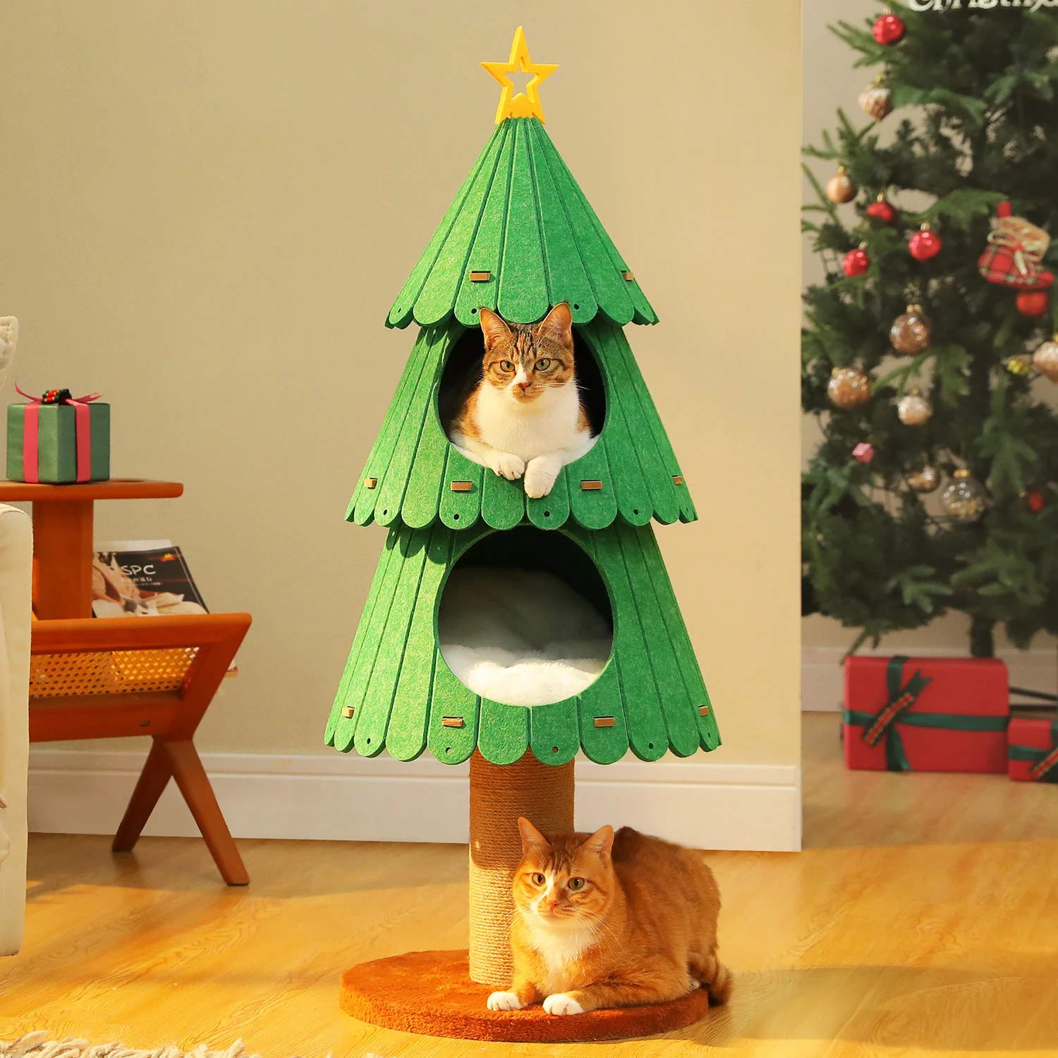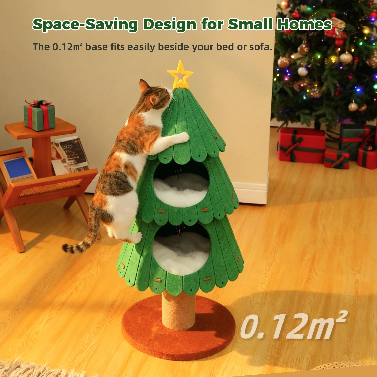 Christmas Cat Tree for Indoor Cats Cute Cat Tower with Cozy Condos Multi-Cat Climbing Furniture Large Cat Bed House Cat Toys
