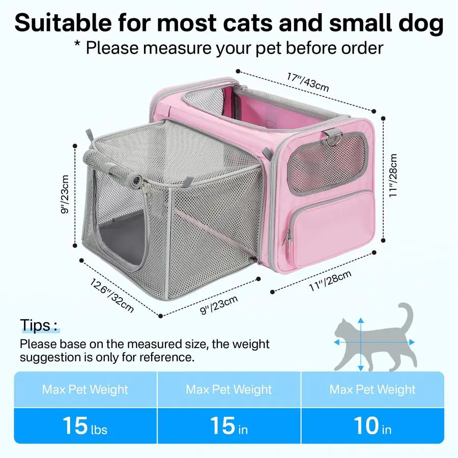 SPECIFICATIONSBrand Name: NONEBreed size: Small BreedsClosure Type: ZipperColor: As shown in the figureHigh-concerned chemical: NoneItem Type: BackpacksLifestage: AdultOrigin: US(Origin) Safe amp Snug for Cats Keep your kitty calm and secure in this soft cat carrier designed for relaxing travel and vet visits. Plush padding and breathable mesh panels keep pets...