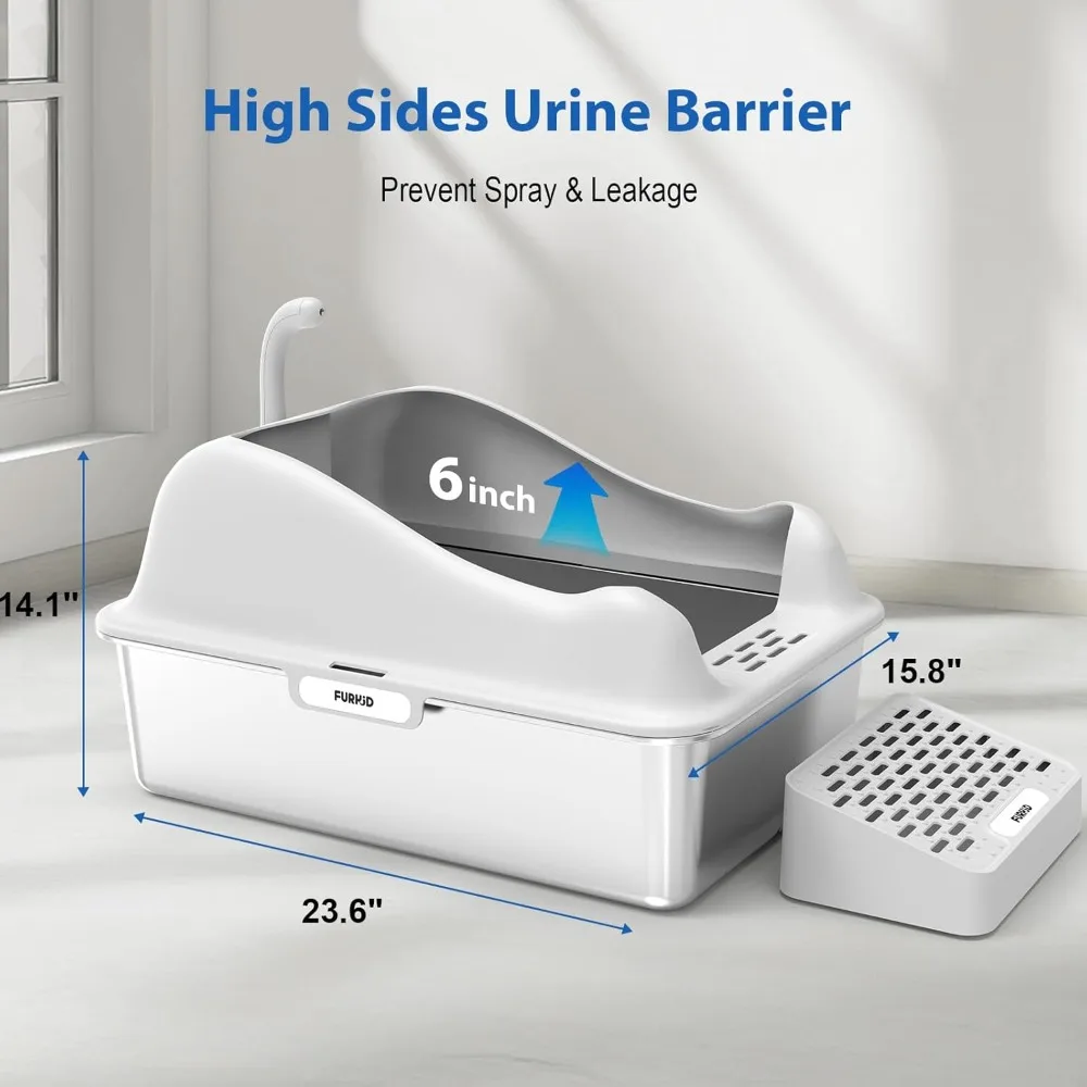 SPECIFICATIONSBrand Name: NONEColor: As shown in the figureHigh-concerned chemical: NoneIs Smart Device: YesMaterial: Stainless steelOrigin: US(Origin) Color Gray Size Extra Large Material Stainless Steel Product Dimensions 23.6L x 15.8W x 14.1H Style Stainless Steel Cat Litter Box Manufacturer Furkid UPC 860013266233 With Lid Yes Litter Box Type Covered Litter Box This product features an extra-large stainless steel cat litter...