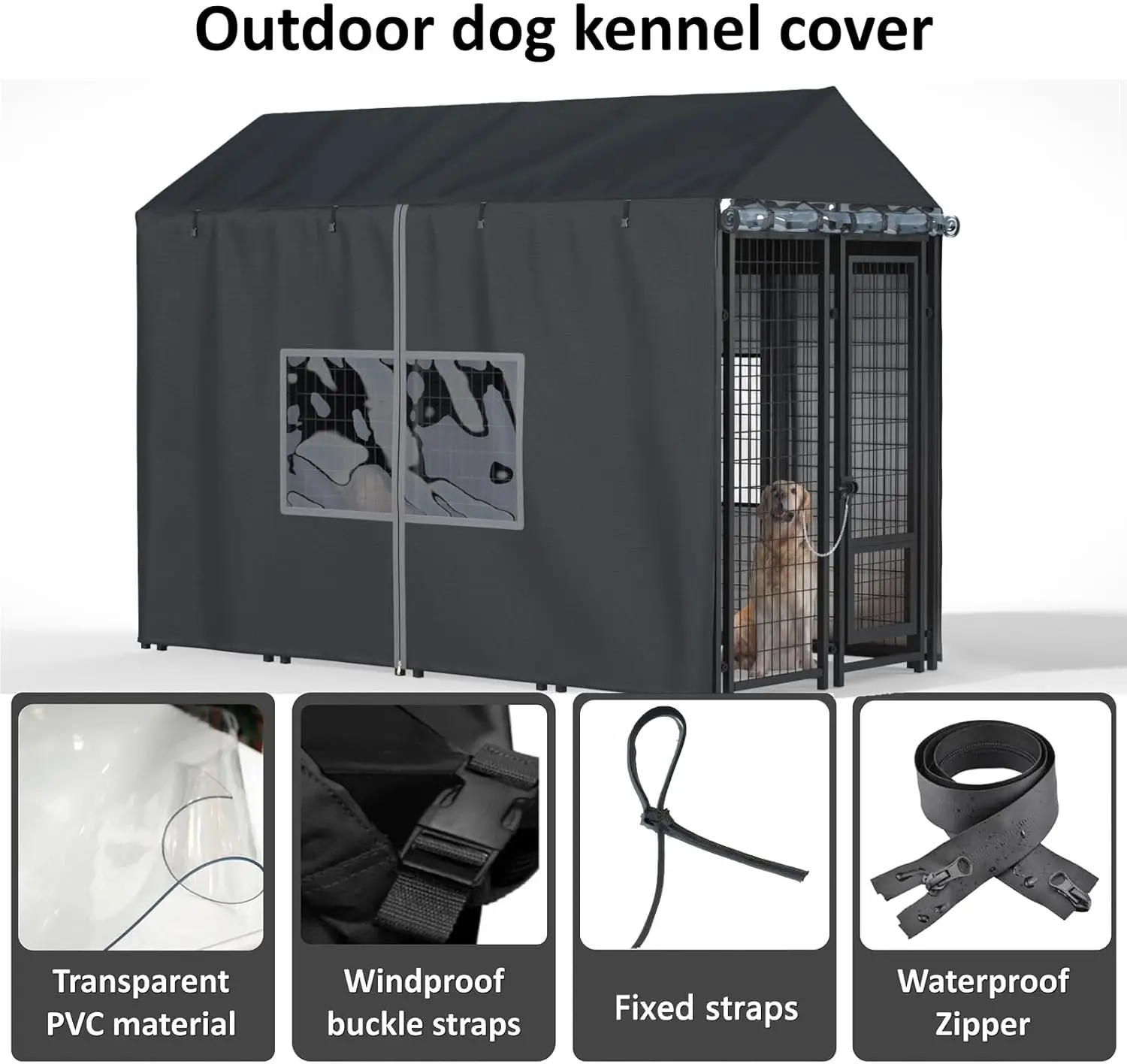 Outdoor Dog Kennel Cover 8x4x6 FT Waterproof Cold Resistant with Zippers & PVC Windows for Pet Protection